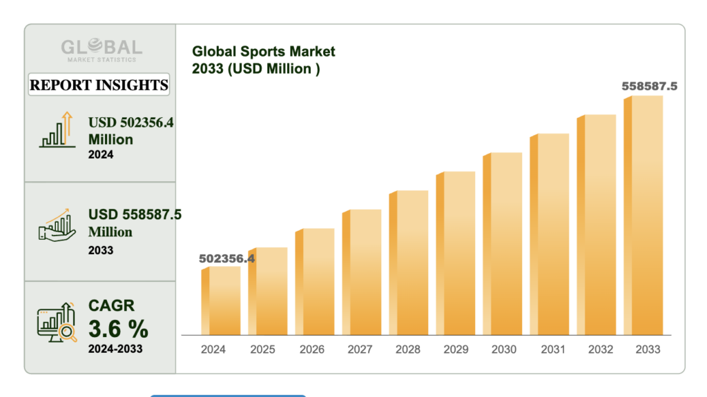 | Deportes (todo el negocio) | 495 mil millones de USD en 2025, desde 470 mil millones en 2024 (CAGR 5.3%) | Ingresos por entradas, patrocinios, merchandising y media rights |